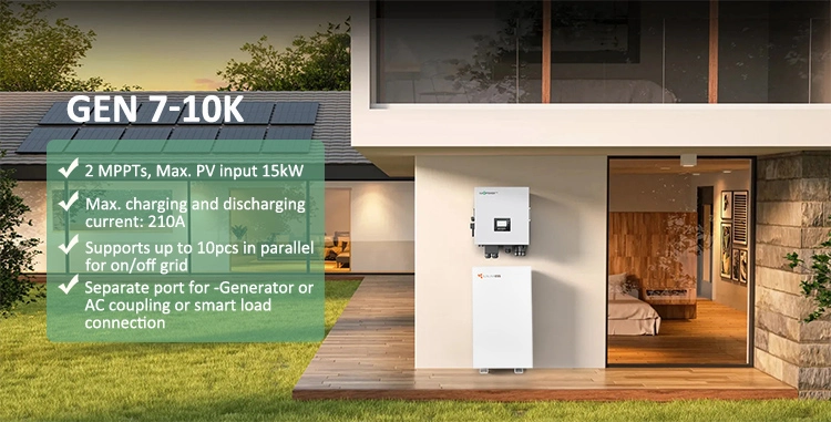 A mais recente série de inversores híbridos Gen-LB-UE de 7 a 10k apresenta recursos de ponta, como uma interface de gerador e acoplamento CA, tornando-o significativamente mais versátil para maiores demandas de energia.