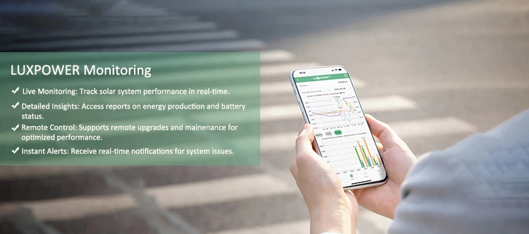 O sistema oferece gerenciamento inteligente de energia com modos abrangentes de monitoramento e operação adaptativa, capacitando os usuários a otimizar a utilização de energia sem esforço. Projetado para confiabilidade, o LuxPower SNA-US 12000 combina hardware de alto desempenho com flexibilidade avançada da grade para suportar backup de missão crítica e cenários fora da rede.