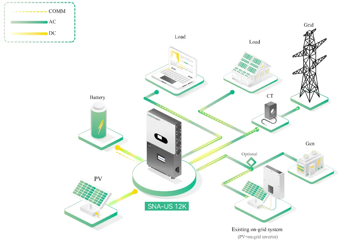 O LuxPower SNA-US 12000 é uma solução de inversor poderosa e eficiente fora da grade projetada para o mercado de fases divididas.